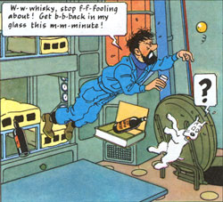 Captain Haddock talking to his whiskey, Explorers on the Moon, p 5.