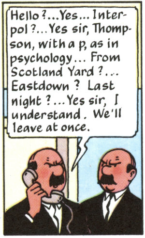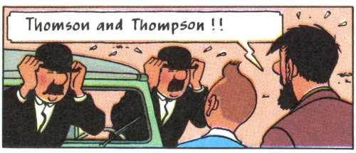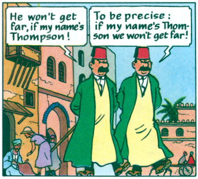The two characters were later named Dupont and Dumond in French and Thomson and Thompson in English translations.