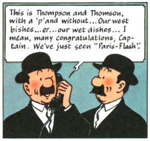 From their first appearance in Tintin in the Congo—serialized May 1930 to June 1931—Thomson and Thompson have been hard to tell apart.